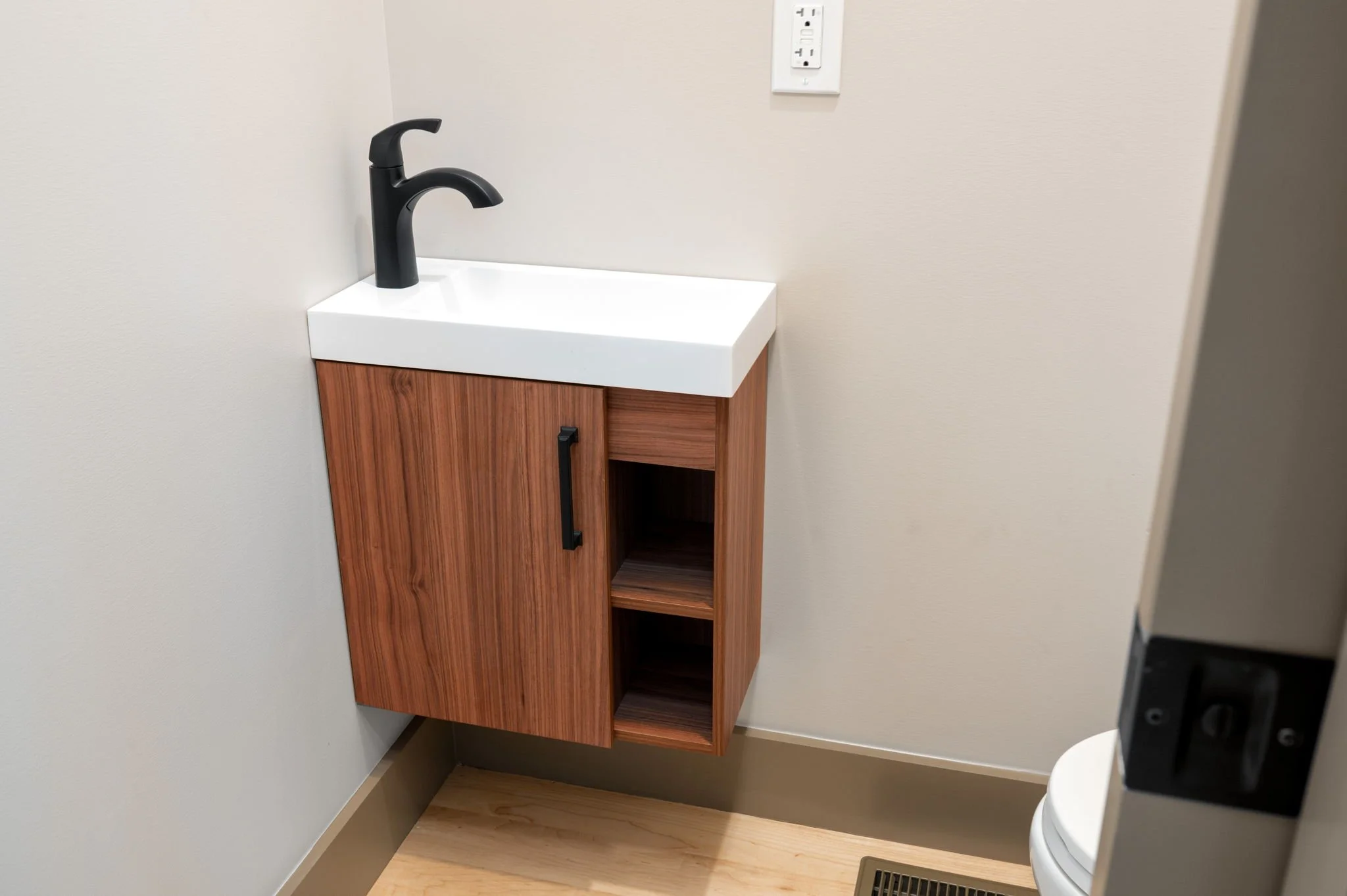 The lower level has been elevated to a fully realized guest suite experience. It features a generously sized den, a small but vibrant kitchenette, and beautifully polished concrete floors that add both modern flair and durability.